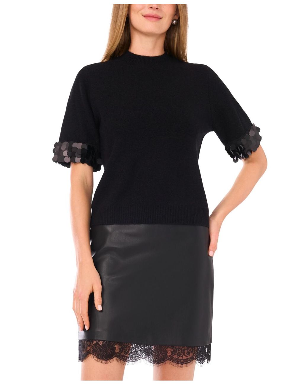 - Mock Neck Short Sleeve Sweater