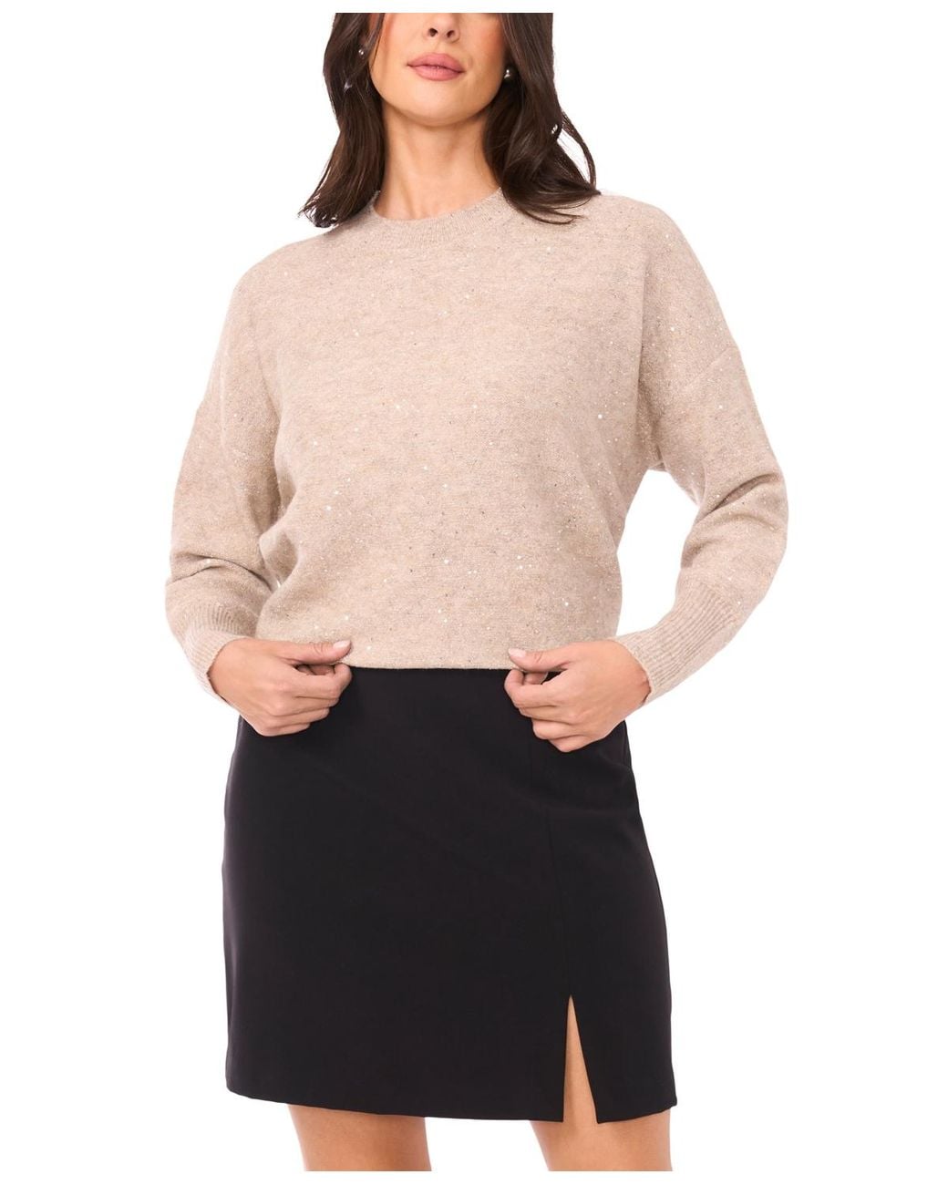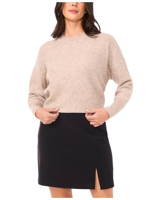 Women's Natural Sequin Long Sleeve Crewneck Sweater