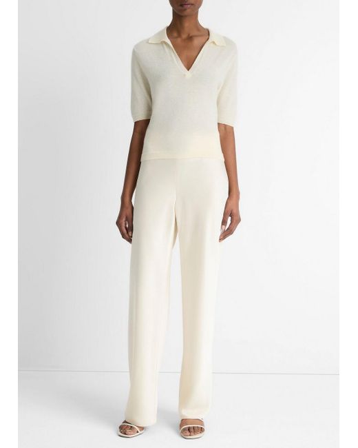 Women's White Cashmere-Silk Short-Sleeve Polo Sweater
