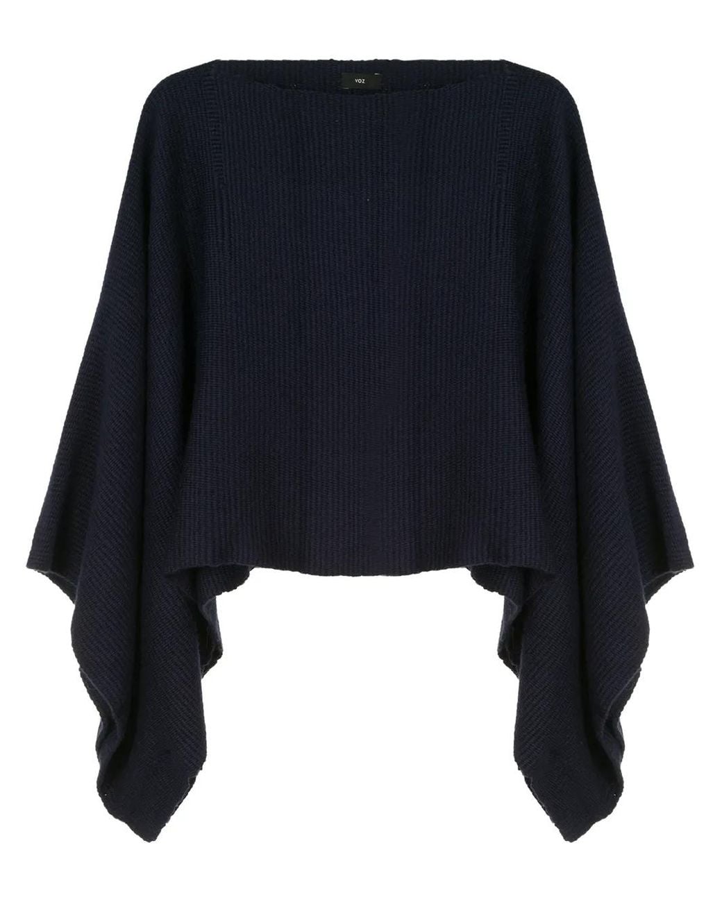 Navy alpaca solid cropped sweater from VOZ featuring a boat neck, long sleeves and a straight hem. POSITIVELY CONSCIOUS: VOZ scores 4 out 5 by independent ethical brand rating agency Good On You. It partners with independent artisans in Chile and has a mission to improve social conditions. It makes products by hand to reduce climate impact and uses low impact non-toxic dyes in all its products.. Size: One Size. Gender: Female. Material:Alpaca. Color: blue