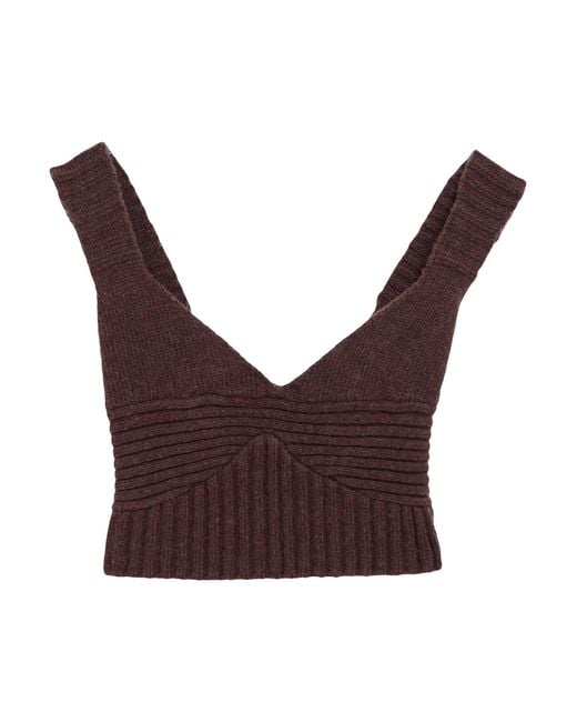 Knitted, Solid color, V-neck, Folds, Sleeveless , Color: Brown , Size: XXS