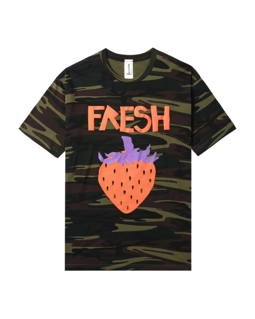 Khaki camouflage pattern crew neck short sleeves straight hem Size: S. Gender: Male. Material:Cotton. Color: black