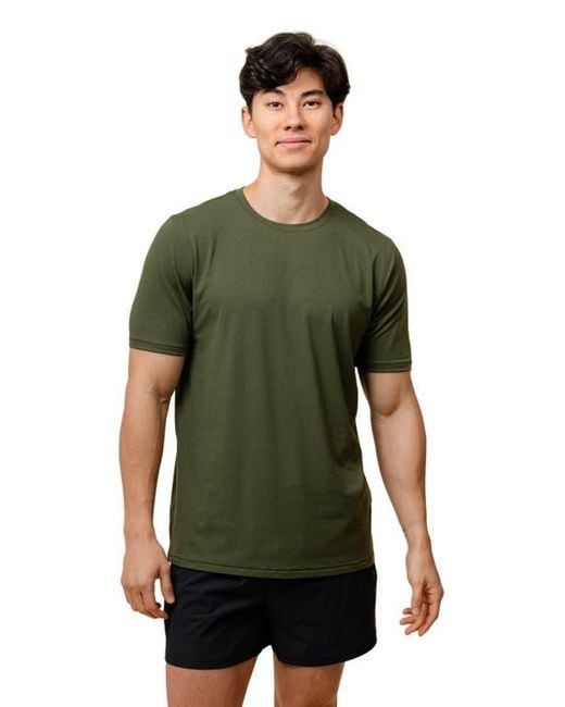 A versatile tee designed to do it all, from workouts to breathwork and everything in between. Featuring chemical free recycled materials. Color: green