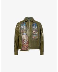 Go to FWRDWho Decides War by Ev Bravado Eden Trucker Jacket in Tan 100% cotton. Made in China. Machine wash. Front zip closure. Side seam pockets. Allover embroidered patches. Button cuffs. Heavyweight canvas fabric. MRDB-MO10. 1131260022SS25. About the designer: Color: natural