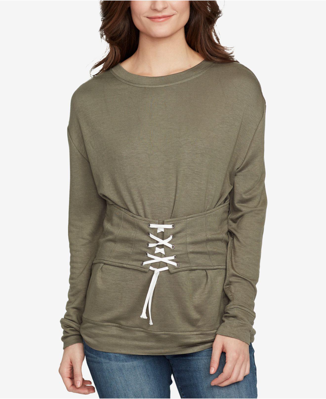 Go to Macy'sAchieving a contemporary look is a cinch with this sweatshirt from WILLIAM RAST, featuring a lace-up corset with stitching and grommet details. Approx. Model measurements: height: 5'10"; bust: 35"; waist: 25"; hips: 37". Fitted; hits at hips. Crew neckline. Lace-up corset. Viscose/polyester/elastane (exclusive of decoration). Machine washable. Color: green
