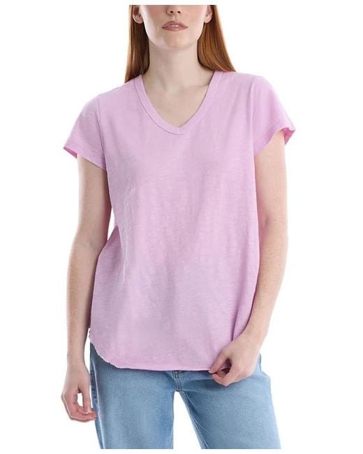 About The Brand:A modern update to a timeless classic. This shrunken-fit V-neck features a shirt-tail hem and raw edge detailing for a laid-back yet elevated vibe. Made in our signature slub fabrication, it s soft, lightweight, and designed to flatter. Perfect for everyday wear, this style is ideal when worn solo or layered. Color: purple
