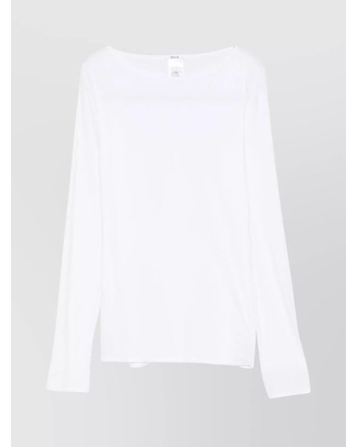 Women's White Lightweight Long Sleeve Top With Crew Neck