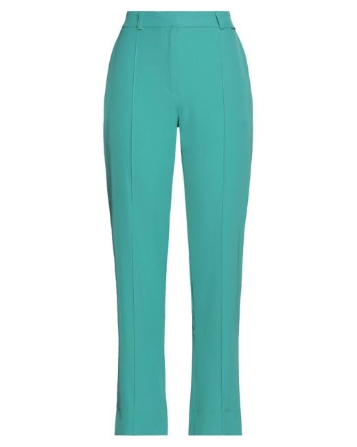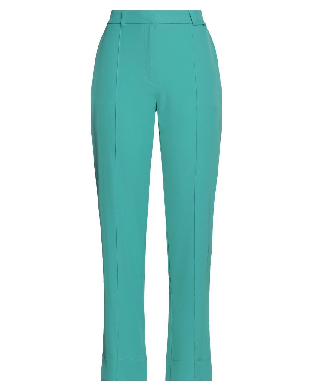 Crepe, brand logo, solid color, high waisted, straight leg, regular fit, hook-and-eye closure, zipper closure, multipockets, stretch , Color: Turquoise , Size: S