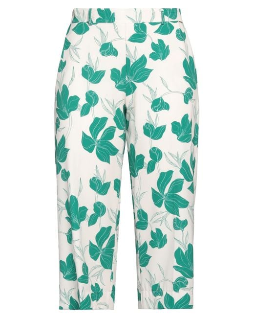 Crepe, coated fabric, laminated effect, belt, brand logo, floral design, high waisted, wide leg, regular fit, zipper closure, multipockets, stretch, tailored , Color: Green , Size: 12