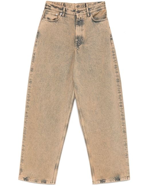 Caramel brown/indigo blue cotton denim bleach wash multi-waistband design front button and zip fastening high-waisted classic five pockets logo patch to the rear wide leg When buying this unisex item, keep in mind that it is graded in standard men's sizing. Color: natural