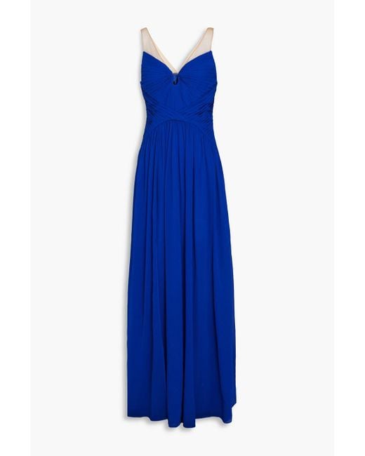 Women's Blue Tulle-trimmed Plissé-crepe Maxi Dress