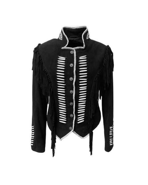 - Warrior Suede Leather Jacket With Beads & Fringes