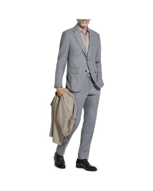 Men's Blue 15Milmil15 Brushed Mini Houndstooth Wool Blend Suit