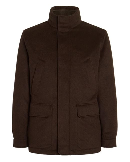 Men's Brown Cashmere High-Neck Jacket