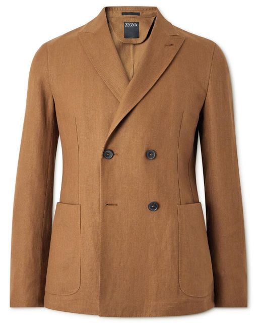 Men's Brown Double-Breasted Linen And Wool-Blend Suit Jacket