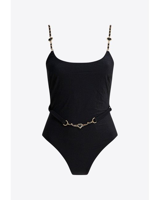 Women's Black Daylight Chain Scoop One-Piece Swimsuit