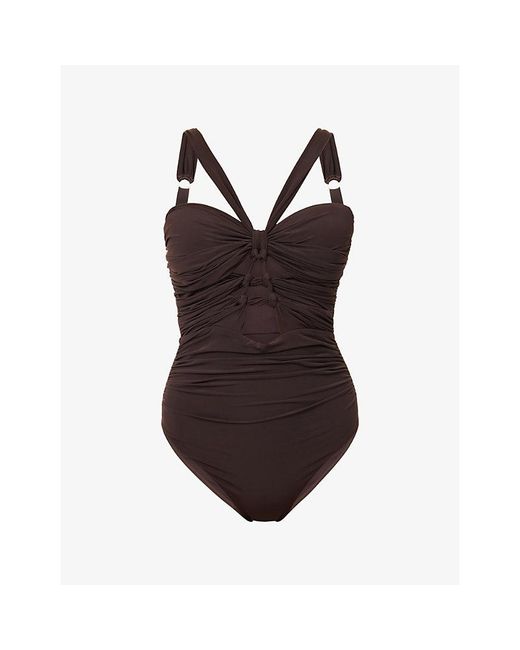 Women's Brown Daylight Knot-Detail Bandeau Swimsuit