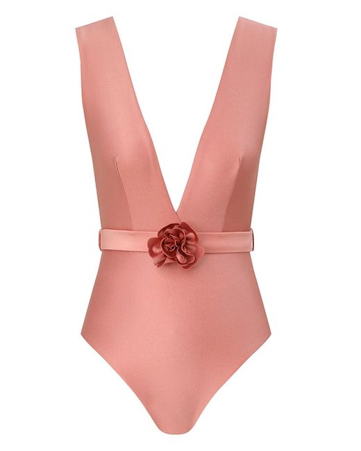 Women's Pink One Piece Swimsuit With Floral Detail "Lucky"