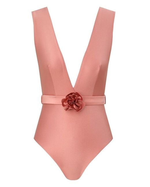 Women's Pink One Piece Swimsuit With Floral Detail Lucky