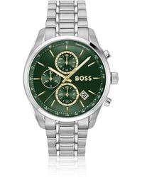 Weiter zu HUGO BOSSDie dunkelgrau beschichtete BOSS Uhr mit grünem Zifferblatt ist mit Totalisatoren im Armaturenbrett-Stil versehen, die von Oldtimern inspiriert sind. Cleanes Gliederarmband. Farbe: grün