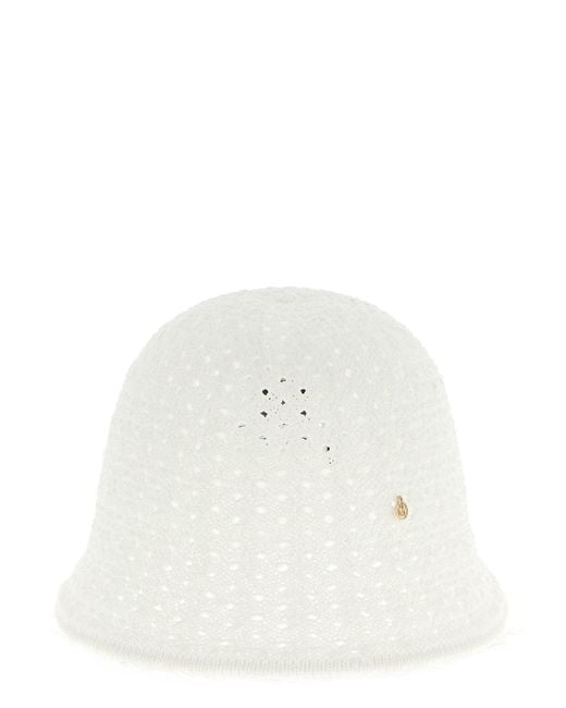 Strickmütze 'Lison' aus Baumwolle, Glockenblumenmuster, Logo-Applikation aus Mikrometall, Fransen am Saum. MAISON MICHEL. 'Lison'-Hut. Größengetreue Passform. S: 56 cm. M: 58 cm. B: 60 cm. Farbe: weiß