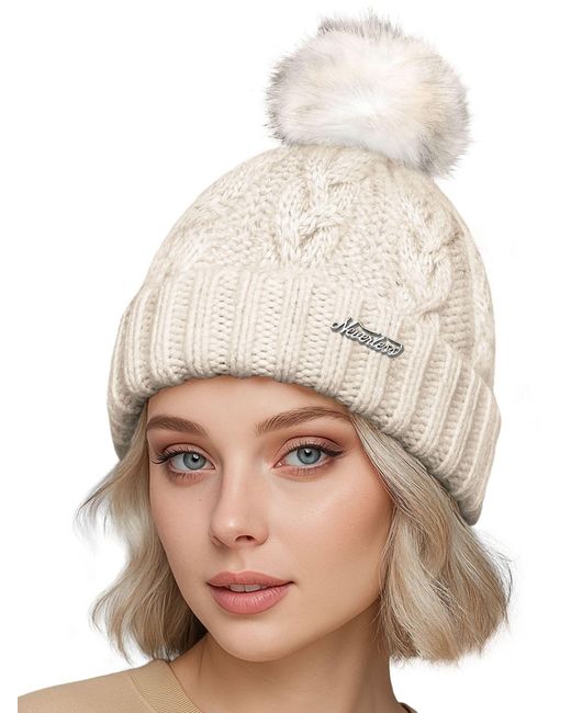 Muster: Motivprint; Mützenart: Bommelmütze Farbe: natur