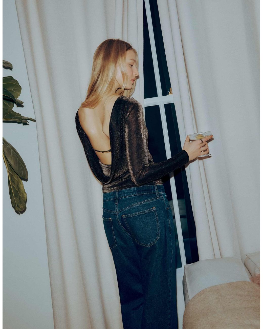 Oberteile von Abercrombie & Fitch U-Boot-Ausschnitt Langärmlig Offener Rücken mit Wasserfallausschnitt Zierriemen Normale Passform. Farbe: blau