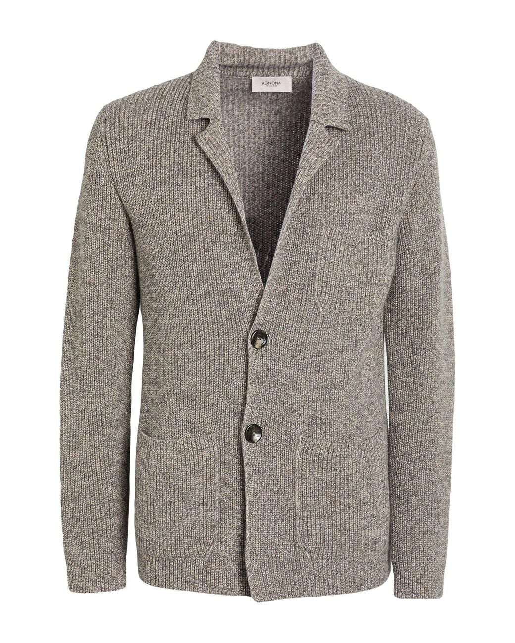 AGNONA. Einreihiger Blazer, Kaschmir, Mittelschwerer Strick, Meliert, Brand Logo, Reverskragen, lange Ärmel, ungefüttert, Knopfverschluss, Aufgesetzte Taschen, Einfache Tasche, Chemische Reinigung, nicht Bleichen, Trockner ungeeignet. 100% Kaschmir, Metall. Farbe: grau