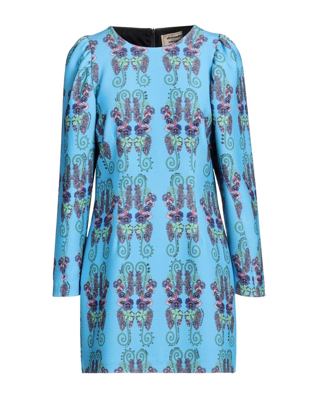 ALESSANDRO ENRIQUEZ. Krepp, ohne Applikationen, Blumenmuster, Rundhalsausschnitt, lange Ärmel, gefüttert, Reißverschluss, Ohne Taschen, Chemische Reinigung, nicht Bleichen, Trockner ungeeignet, A-Linien-Kleid. 100% Polyester.