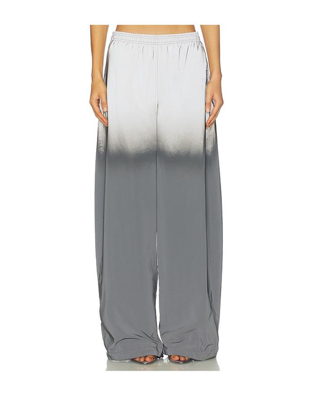 Alexander Wang HOSE REFLECTIVE TRACK in Metallic Silver,Black. Größe S. Also in XS. Alexander Wang HOSE REFLECTIVE TRACK in Metallic Silver,Black. Size XS. Hergestellt in China. Maschinenwäsche, kalt. Schlupfform. Leichtes Ripstop-Gewebe. Raffungen am Saum. Zwei seitliche Reißverschlusstaschen. Beinöffnung 53 cm. AWAR-WP74. UWC1264115. Farbe: grau