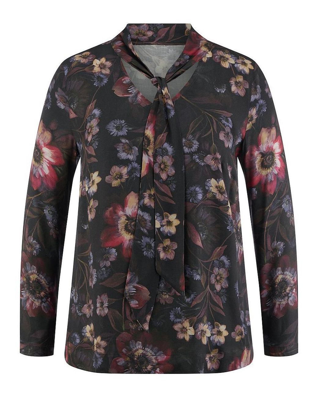 Bluse von ANNA AURA mit 1/1-Arm. Total floral. Mode-Highlight mit einem faszinierenden Exklusiv-Print von mystischer Schönheit. Modern, feminin und überaus komfortabel in geradem Style zum Schlupfen mit einer variabel zu bindenden, fixierten Schluppe und 1-Knopf-Manschette. Jede Bluse ein Unikat. 100% Viskose. Länge in Größe 42 ca. 68 cm. Diese Bluse ist maschinenwaschbar. Schonwaschgang 30°. Chlorbleiche nicht möglich. Nicht heiß Bügeln. Reinigung P schonend. Trocknen im Tumbler nicht möglich. Farbe: Aubergine/Multicolor. Erhältlich in den Größen: 42, 44, 46, 48, 50, 52, 54, 56