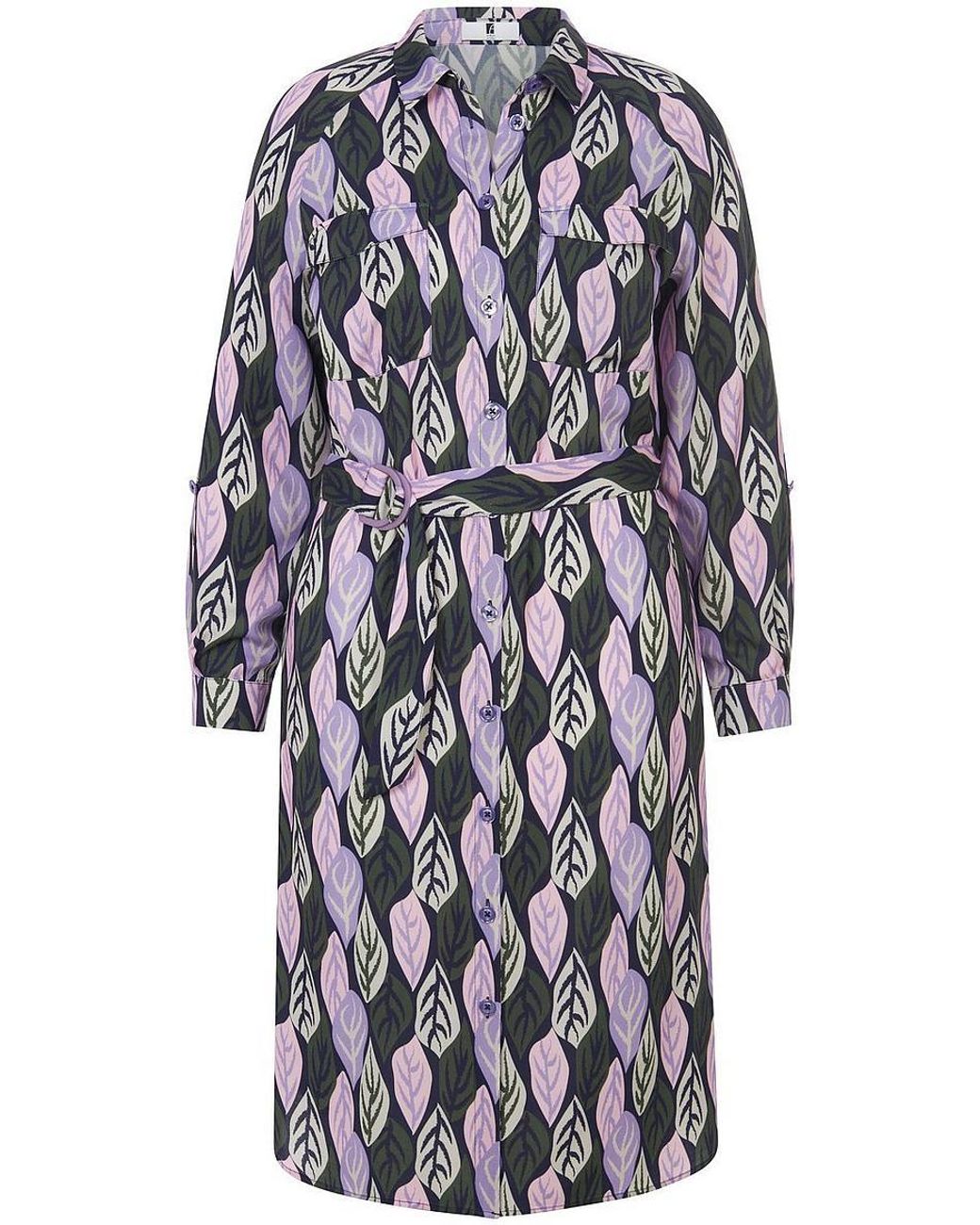 Kleid von ANNA AURA mit 1/1-Arm zum Krempeln. Fashion-Star in neuen Farben für City oder Event. Der faszinierende Print von stilisierten Blatt-Motiven wirkt auf dem fließendem feinem Gewebe besonders elegant. Locker fallender Hemdblusen-Schnitt mit Brustpattentaschen und durchgehender Knopfleiste − mit dem Bindegürtel können Sie das Kleid auf Figur bringen. Jedes Modell ein Unikat. 100% Viskose. LENZING™ ECOVERO™ Viskose ist eine regenerierte Cellulosefaser. Länge in Größe 42 ca. 140 cm. Dieses Kleid ist maschinenwaschbar. Schonwaschgang 30°. Chlorbleiche nicht möglich. Mäßig heiß Bügeln. Reinigung P. Trocknen im Tumbler nicht möglich. Farbe: Marine/Flieder/Multicolor. Erhältlich in den Größen: 40, 42, 44, 46, 48, 50, 52, 54, 56