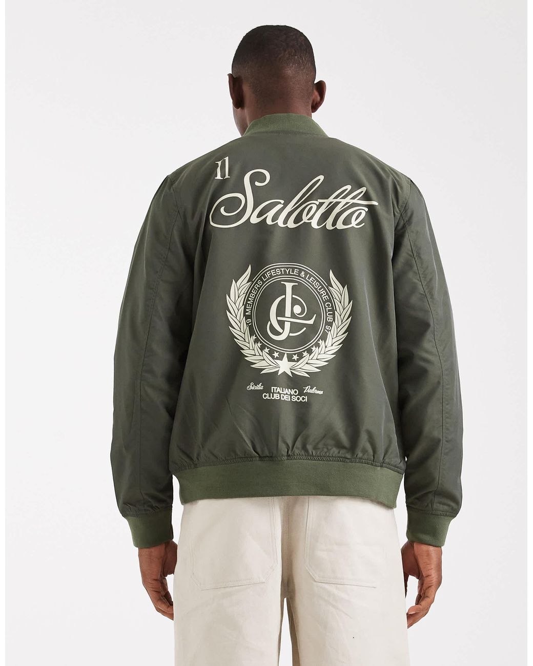Jacke von ASOS DESIGN Placement-Prints Baseball-Kragen Reißverschluss Seitentaschen Gerippte Abschlüsse Normale Passform. Farbe: grün