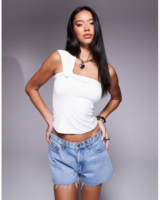 Oberteile von ASOS DESIGN Bandeaustil Cape-Träger Knotendesign Schmale Passform. Farbe: blau