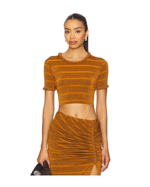AZULU KURZARM-OBERTEIL SUSY in Cognac. Größe L. Also in M, S, XS. AZULU KURZARM-OBERTEIL SUSY in Cognac. Size M, S, XS. 71% Rayon, 12% fiber metallized, 11% poliamide, 6% Elasthan. Maschinenwaschbar. Cropped styling. Geflochtene Bordüren. Midweight jersey fabric with metallic threading. Die Artikel werden nicht im Set, sondern einzeln verkauft. AULU-WS12. HST002. Farbe: orange