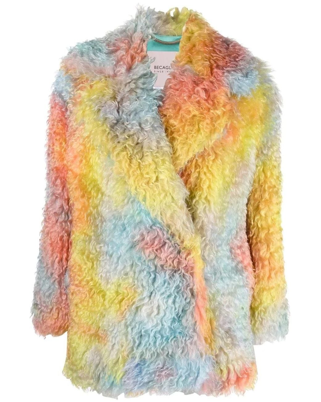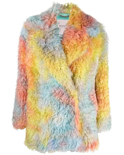 Damen Mantel Aus Faux Shearling Mit Batikmuster in gelb