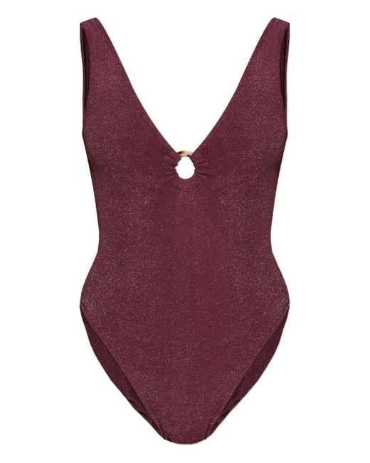 Amarenarot V-Ausschnitt Ringdetail tiefer Rückenausschnitt ärmellos einteiliges Design Swimwear kann nur über Ihrer eigenen Unterwäsche anprobiert werden. Taucherbrille und Schnorchel sind optional. Farbe: lila