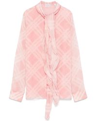 Weiter zu FARFETCHDunkelrot Karomuster Georgette-Seide Knopfverschluss Bündchen mit einem Knopf Schal-Detail Size: 10. Gender: Female. Material:Seide. Farbe: lila