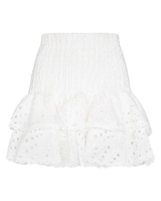 Nerissa Gestufter Minirock Aus Einer Baumwollmischung Mit Lochstickerei Und Volants - Blau