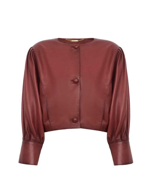 Damen Lederjacke mit Puffärmeln in rot