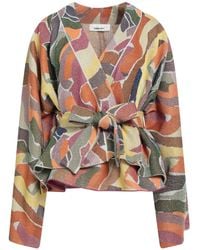 Weiter zu YOOXHandgestrickt, Mittelschwerer Strick, einfarbig, Fransen, lange Ärmel, Verschluss mit Häkchen, Chemische Reinigung, nicht Bleichen, Trockner ungeeignet. 62% Acetat, 18% Polyester, 8% Wolle, 8% Viskose, 4% Alpakawolle. Farbe: natur