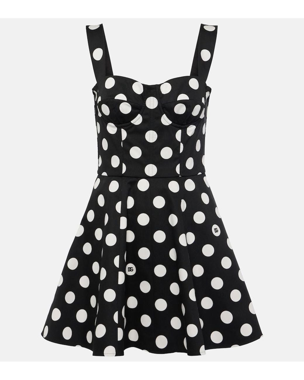 Damen Bustier-Minikleid Aus Baumwolldrillich Punkteprint in schwarz
