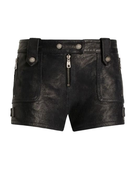 - Kurze Leder-Shorts Mit Reißverschlusstasche