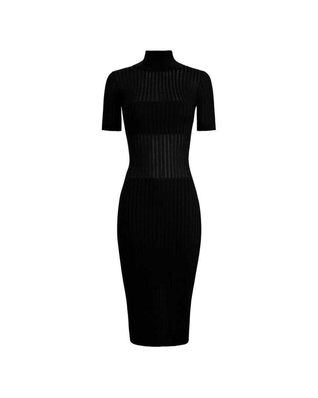 Belted Stretch-Jersey Turtleneck Midi Dress - Schwarz