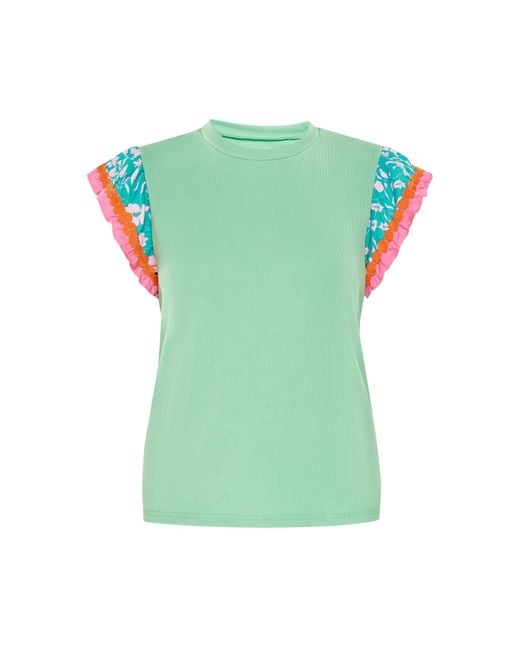 Design: Abgesteppter Saum/Kante; Material: Viskose; Ausschnitt: Rundhals-Ausschnitt; Details: Rüschen; Extras: Weicher Griff; Passform: Normale Passform; Ärmellänge: Viertelarm; Länge: Normale Länge Farbe: grün