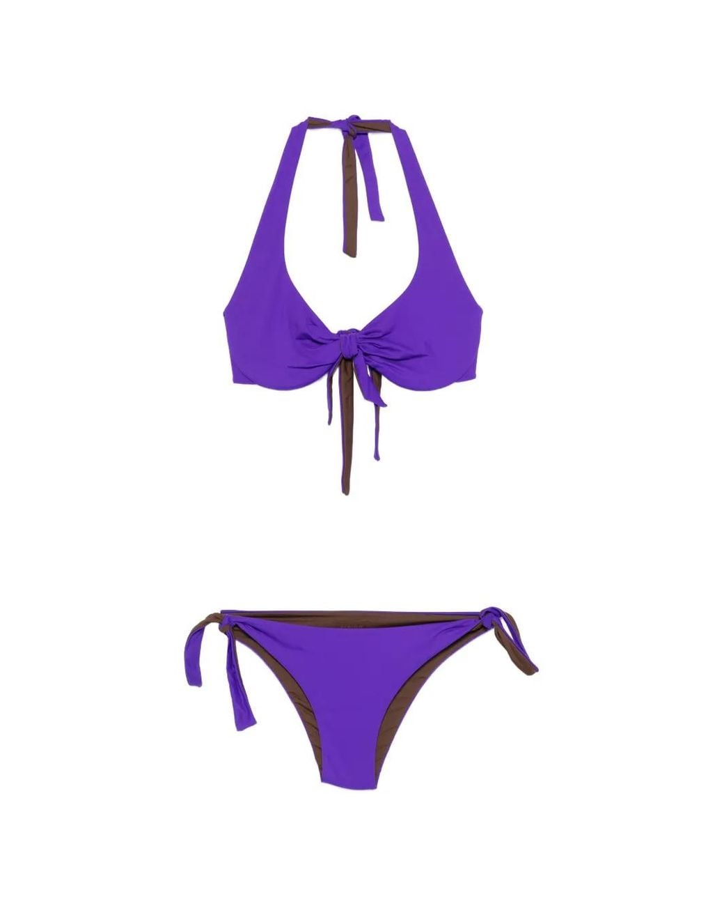 Lila Schleifenverschluss Triangel-Design mit Höschen Swimwear kann nur über Ihrer eigenen Unterwäsche anprobiert werden. Size: S. Gender: Female. Material:Polyamid/Elastan. Farbe: lila