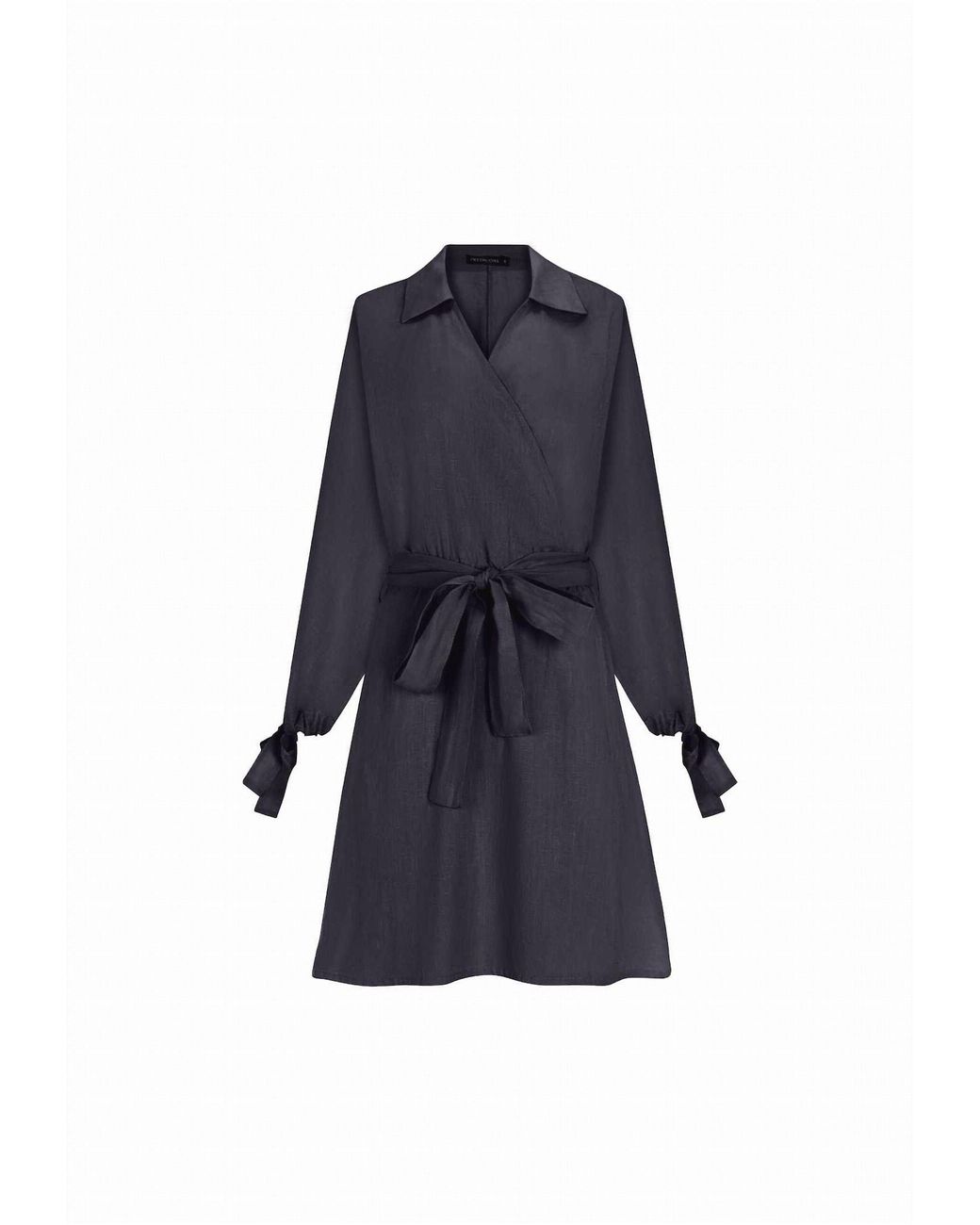 Verschlussart: Reißverschluss; Material: Leinen; Länge: Knielang; Passform: Normale Passform; Ärmellänge: Langarm Farbe: blau