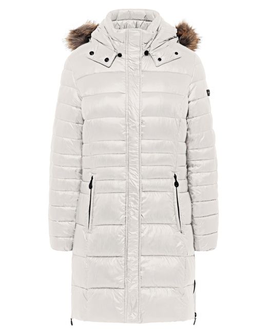 Mantelart: Steppmantel; Design: Kapuze mit Kunstfellbesatz; Verschlussart: Reißverschluss; Fütterung: Warm gefüttert; Muster: Unifarben; Extras: Glänzend; Passform: Normale Passform; Länge: Normale Länge Farbe: grau