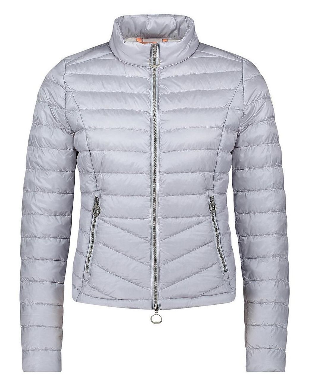 Steppjacke von GIL BRET: praktisch, unkompliziert und koffertauglich. Aus Mikrofaser mit Sandwichstepp, hoch schließbarem Stehkragen, 2-Wege-Frontreißverschluss, in die Teilungsnähte im Vorderteil integrierten Reißverschlusstaschen und gerundetem Saum. Oberstoff und Futter aus 100% Polyamid. Wattierung in 100% Polyester. Länge ca. 57 cm. Diese Steppjacke ist maschinenwaschbar. Schonwaschgang 30°. Chlorbleiche nicht möglich. Nicht heiß Bügeln. Keine chemische Reinigung. Trocknen mit reduzierter Belastung. Farbe: Eisblau. Erhältlich in den Größen: 36, 38, 40, 42, 44, 46
