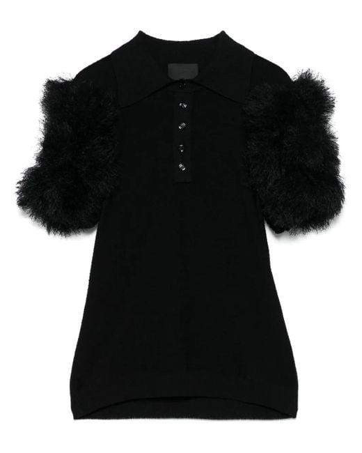 Damen Poloshirt Mit Pompon-Detail in schwarz